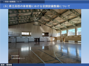 そうした中、避難所として指定されている、県立高校3校の既存体育館について、空調設備整備を行うための来年度予算案が公表された。