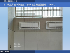 そこで県教育委員会では、県立高校の既存体育館にも、空調設備を導入する方針に転換し、当面建替え予定がなく、かつ災害時の避難所に指定されている学校に、順次整備したいと考えています。