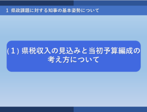 Read More2月17日令和7年第1回定例会での杉本 透県議による一般質問を掲載させていただきます。 以下が内容です。 杉本 透 議員 質問: 県はできるだけ早期に県民ホールを再開できるよう、綿密な計画を立てて、着実に再整備を進めてい…