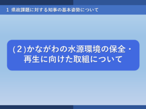 Read More2月17日令和7年第1回定例会での杉本 透県議による一般質問を掲載させていただきます。 以下が内容です。 杉本 透 議員 質問: 水源環境保全・再生施策を進める上では、市町村としっかり議論をしながら、県民の理解を得られる…